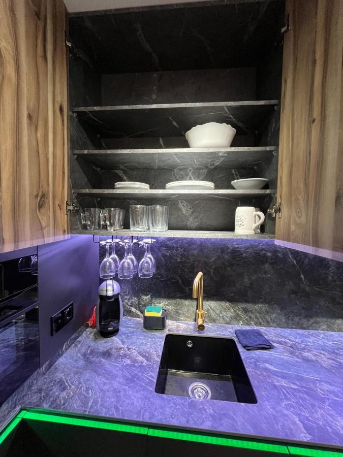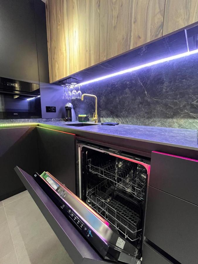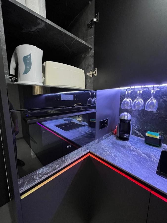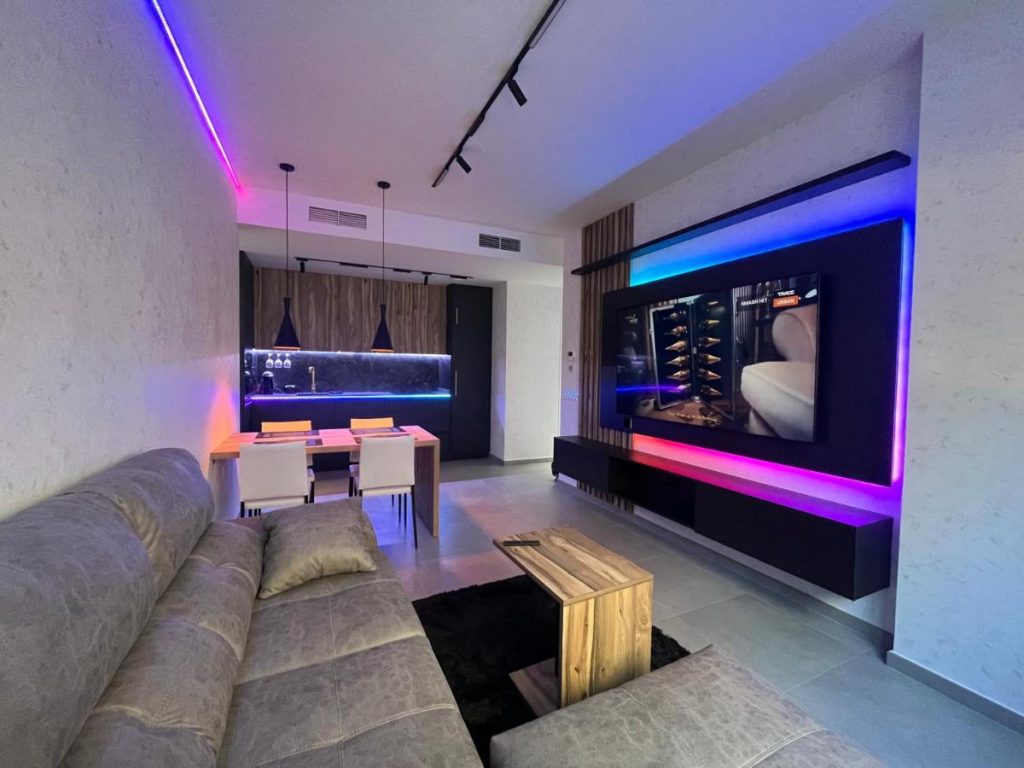 Conéctate a internet a través de nuestra conexión WI-FI y relájate viendo tus series favoritas en la smart-TV. La cocina de lujo, completamente equipada, te permitirá preparar deliciosas comidas, mientras que el baño, que incluye toallas suaves, geles de baño y una revitalizante ducha de hidromasaje, te brindará un toque de bienestar. Además, contarás con un aseo adicional.