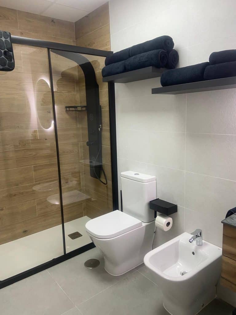 Incluye toallas suaves, geles de baño y una revitalizante ducha de hidromasaje que te brindará un momento de bienestar y relajación.